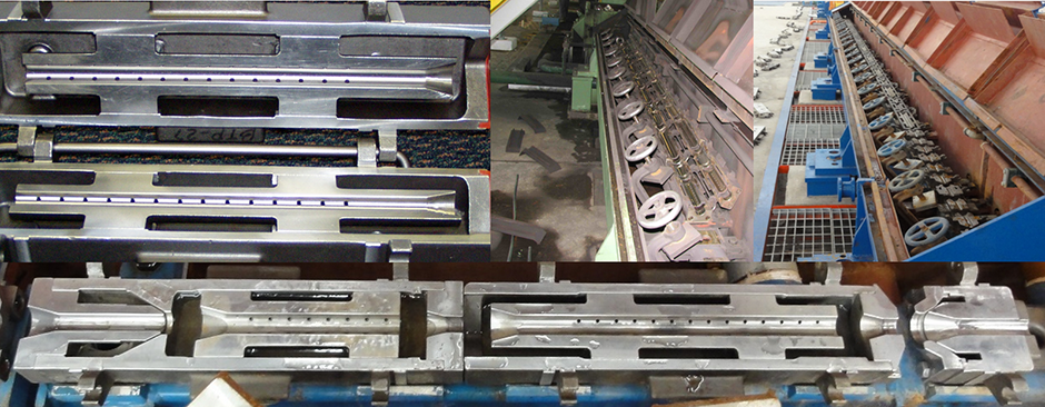 We are supplying all different types of cooling nozzles, high efficient cooling nozzle as well as air or water strippers for the water boxes and water box extensions before and after the Finishing mill blocks, which cover the complete size range for the ferrous long rolling mills and nonferrous copper & aluminum mills.